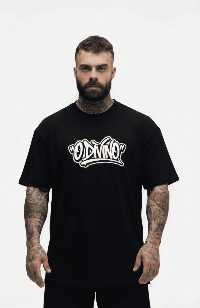 Camiseta Oversized O Divino Doodle Preto